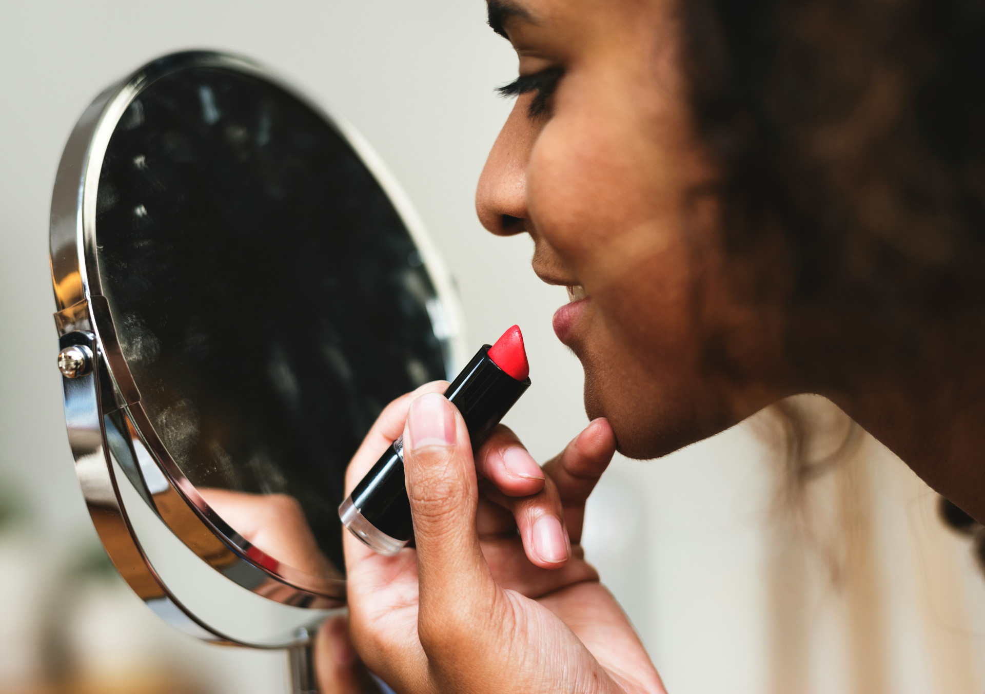 Farven bør harmonere med din hudtone og personlige stil. Varme undertoner klæder ofte koral, fersken og rødbrune nuancer, mens kolde undertoner fremhæves af bærfarver, pink og blålige røde toner. Prøv dig frem – den rette farve kan gøre en markant forskel.
